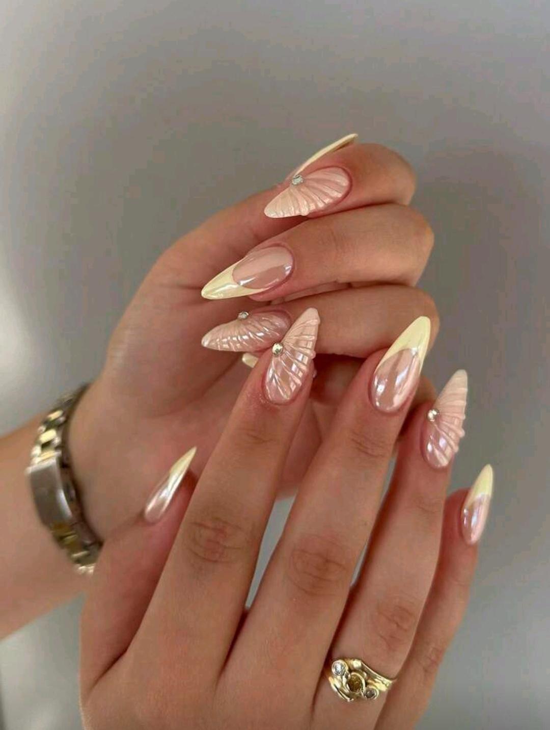 10Pcs Handmade press on nails Y2K Style Magic Silver Long Almond 3D Gelnail Makes Yellow French Tip Press On Nails Long, Glitter With Rhinestone Design Fit Perfectly Acrylic False Nail Set,Contain 1Pc Jelly Glue And 1Pc Nail File, Summernails & French Tip Nail For Women And Girls To Diy Daily Work Study And Party Use Nail Supplies Nails