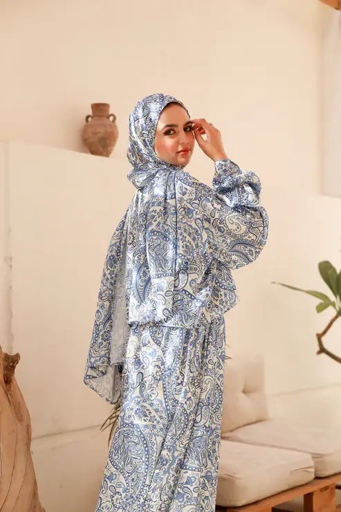 AZUREAN TALE PRINT DRESSY SATIN ISDAL