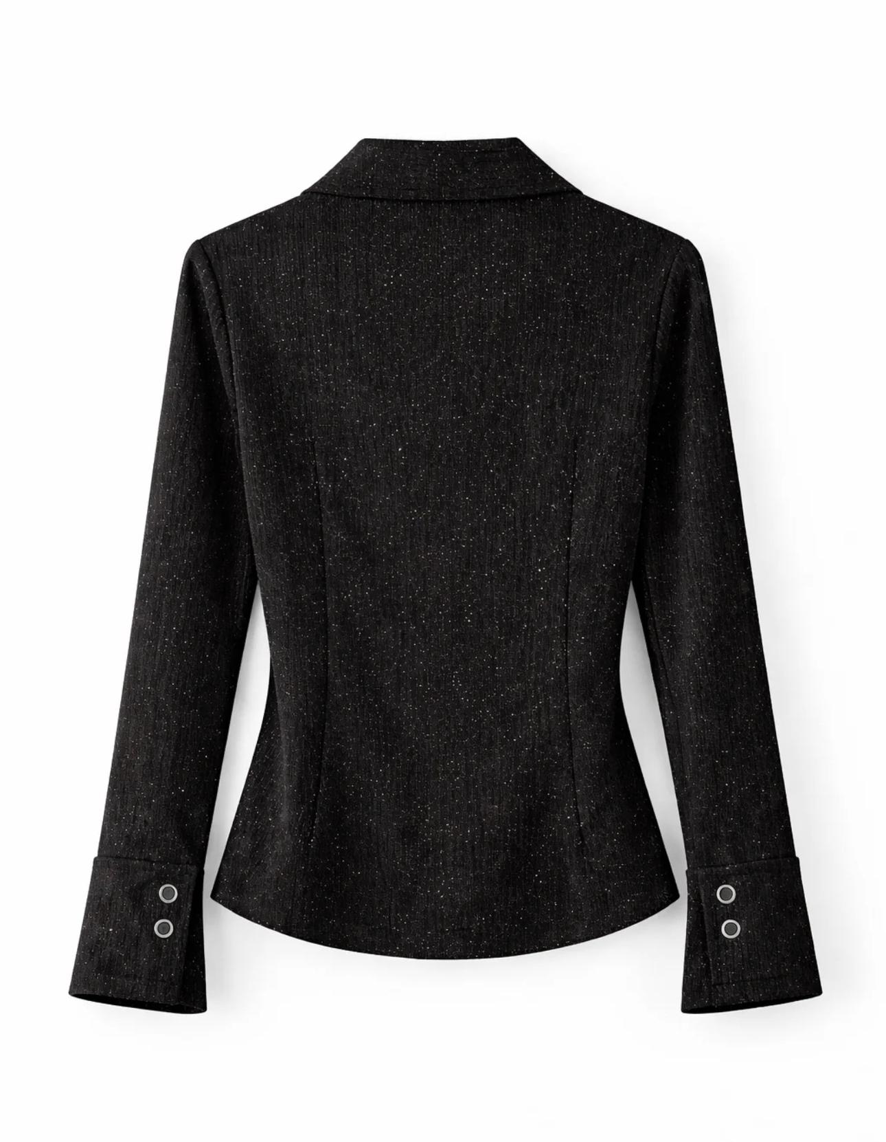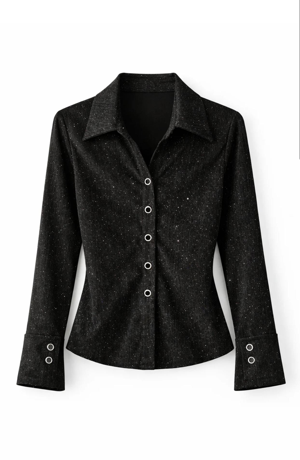 Black Shimmer Buttoned Top