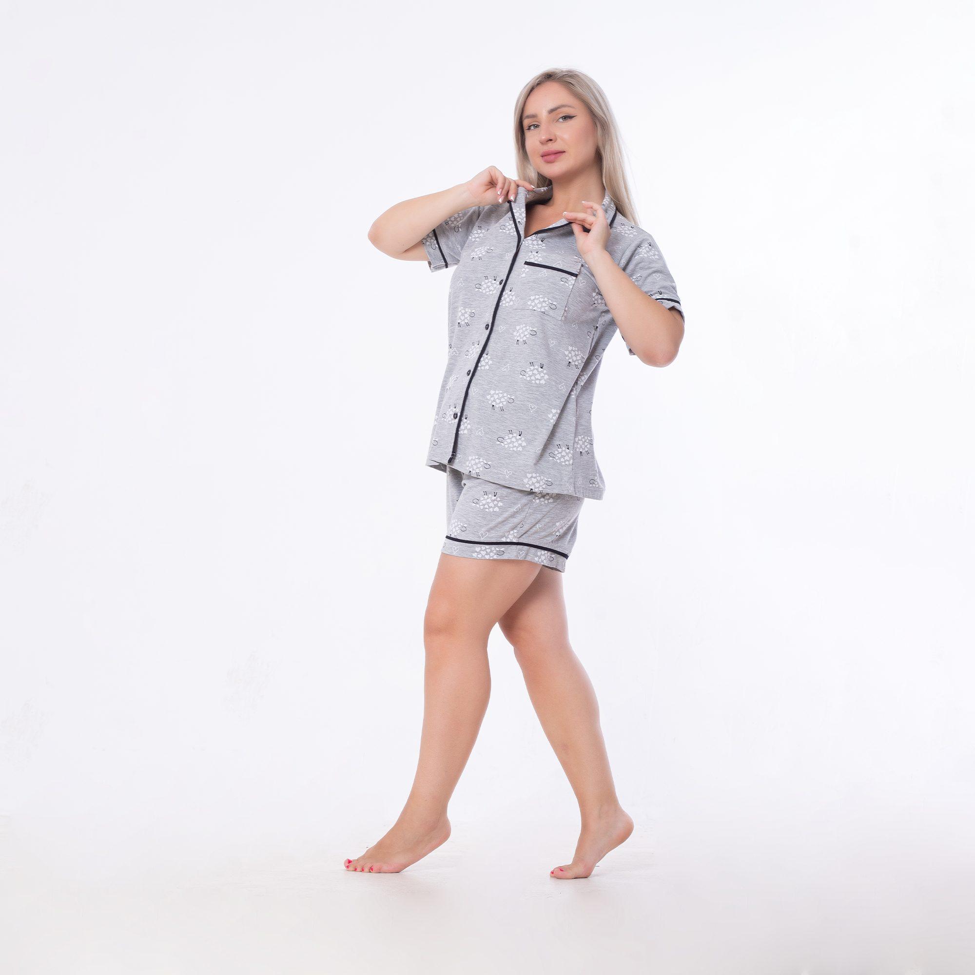 Stay cool and comfortable in our Classic Summer Cotton Pajama Set. Featuring printed pajama shorts and a half-sleeve blouse, this set is made from soft, breathable cotton, perfect for warm weather. Designed for both lounging and sleeping, it offers a relaxed fit and ultimate comfort. With its playful print and lightweight material, this pajama set is an essential for your summer wardrobe. Available in all sizes, ensuring a perfect fit for every woman.
