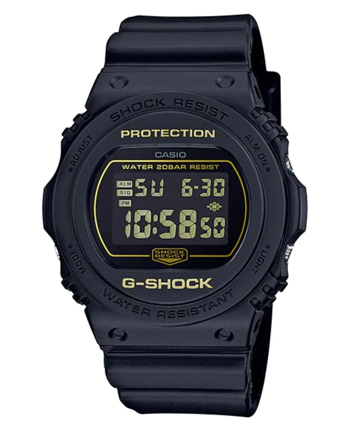 Features: Shock resistant, Alarm, Timer, Stopwatch, EL backlight, 12/24 hour format, Date and Day display