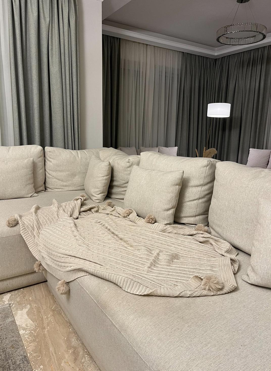 This soft throw brings a warm, relaxed touch to any living space. The knitted texture gives it a cozy, layered look, while the tassels along the edges add a subtle decorative finish. Light, comfortable, and easy to style, it works beautifully on sofas, beds, and reading corners.