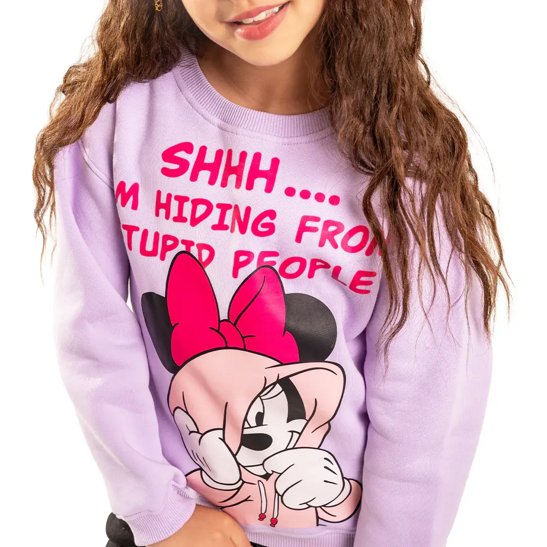 Featuring a fun “ Hiding minnie ” print, this sweatshirt adds a playful and confident touch to your child’s everyday style — perfect for kids who love to express their personality with flair.