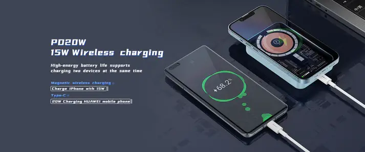 5000mAh power bank with PD20W fast charging and 15W wireless charging