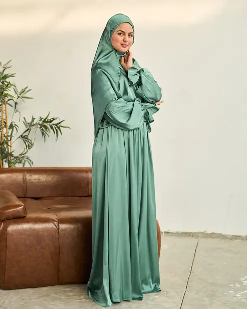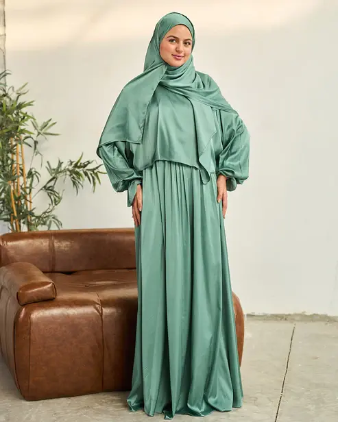 SAGE GREEN SATIN DRESS ISDAL