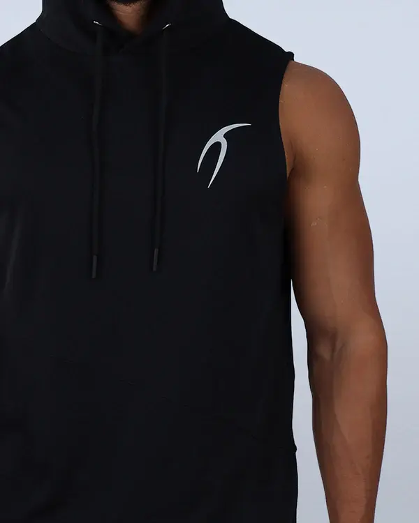 Experience ultimate comfort with our Black Sleeveless Breathable Hoodie. Relaxed fit and breathable fabric ensure maximum comfort during workouts. Shop now!