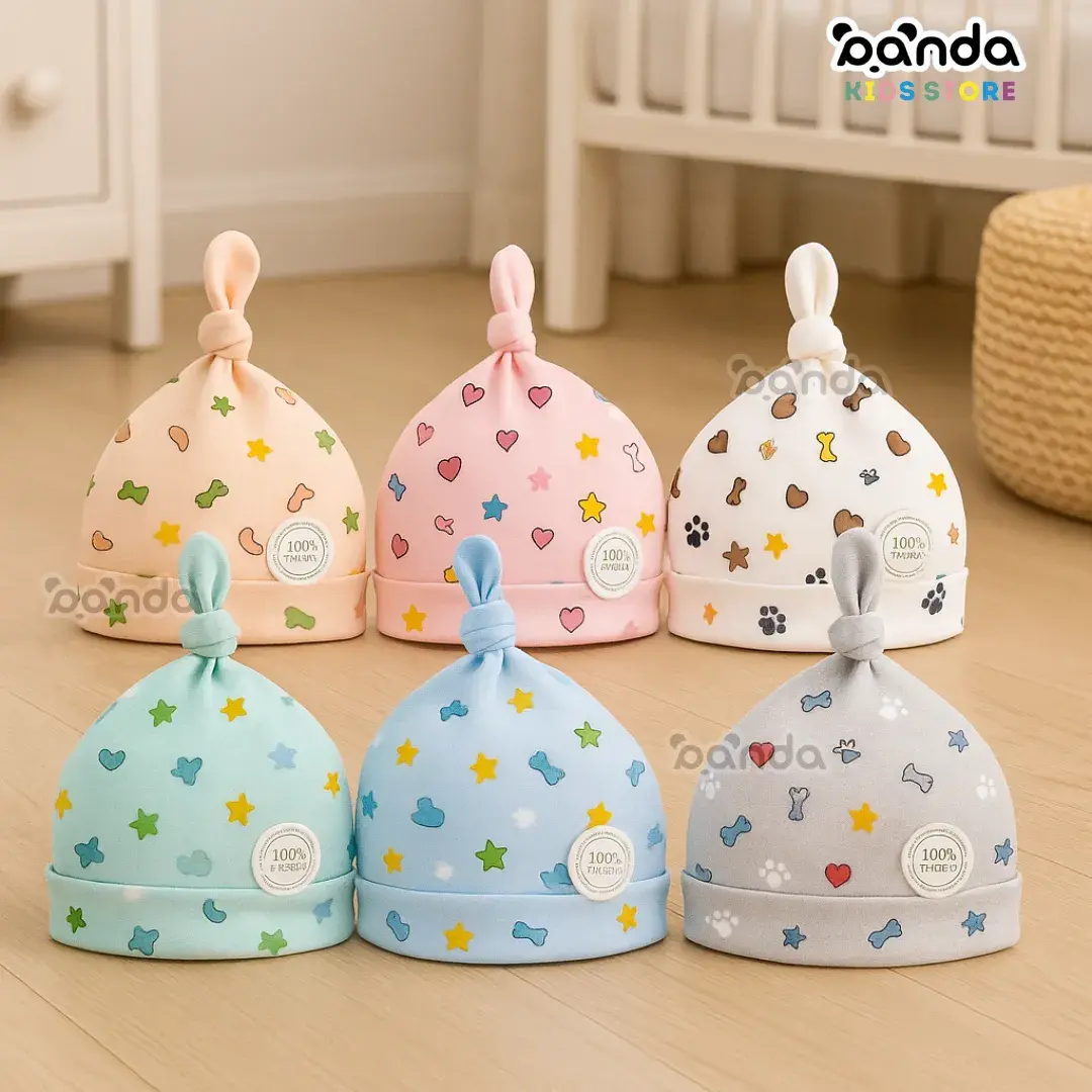 طاقية مواليد زعبوط منقوشة الوان متنوعة ماركة فاميلي قطن ١٠٠٪