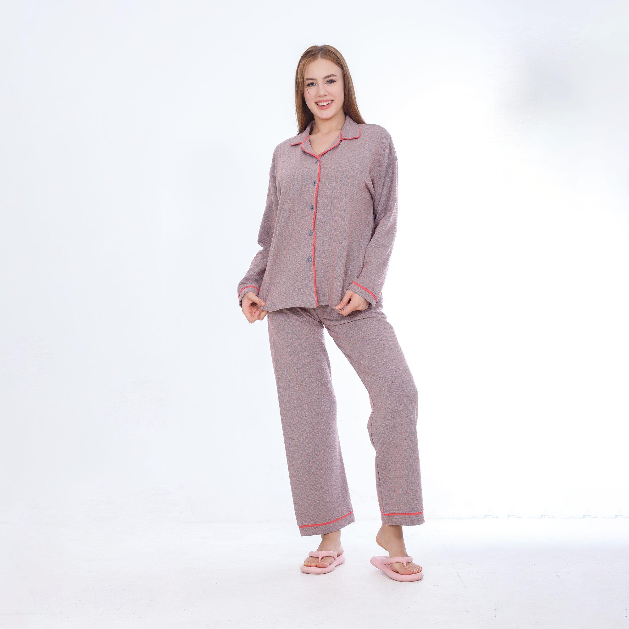 Experience ultimate comfort and timeless style with the Zecotex Winter Design Milton Cotton Pajama for Women. Crafted from 100% Milton cotton, this classic pajama set features a long, buttoned jacket with a stylish V-neck and a traditional buttoned collar.