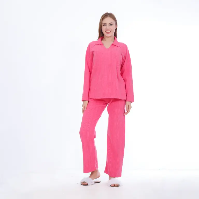 Experience cozy winter comfort with the Zecotex Cotton Cashmere Pajama Set, crafted from soft and durable 100% cotton cashmere. This elegant two-piece homewear features a stylish V-neck blouse with long sleeves and matching pants — perfect for cold-weather lounging or restful nights.
