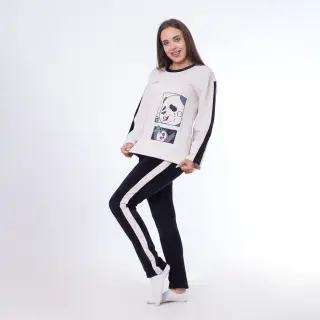 Stay warm in style this winter with the 2-Piece Cotton Pajama Set, designed for ultimate comfort and a flattering fit. The set includes a full-sleeve Milton cotton blouse with a round neckline, featuring a stylish side print and special cut on both sides, paired with soft velvet pants for a luxurious touch. Ideal for lounging or sleeping, this cozy home wear set is made from 100% cotton with a hint of Lycra for extra softness and flexibility.