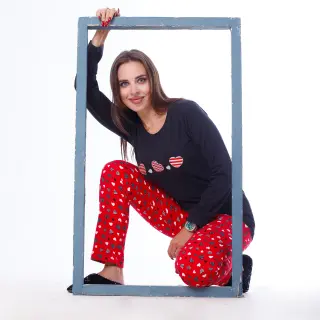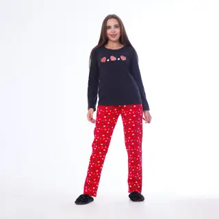 Enjoy warmth and comfort all winter long with the Winter Pajama Set, crafted from 100% Milton cotton and enhanced with half Lycra for a touch of stretch. This cozy 2-piece set features a long-sleeve blouse with a round neckline, drop shoulders, and elegant chest embroidery, designed to provide both style and comfort. Paired with elastic waist pants, this set is perfect for relaxing at home or staying warm on chilly nights.