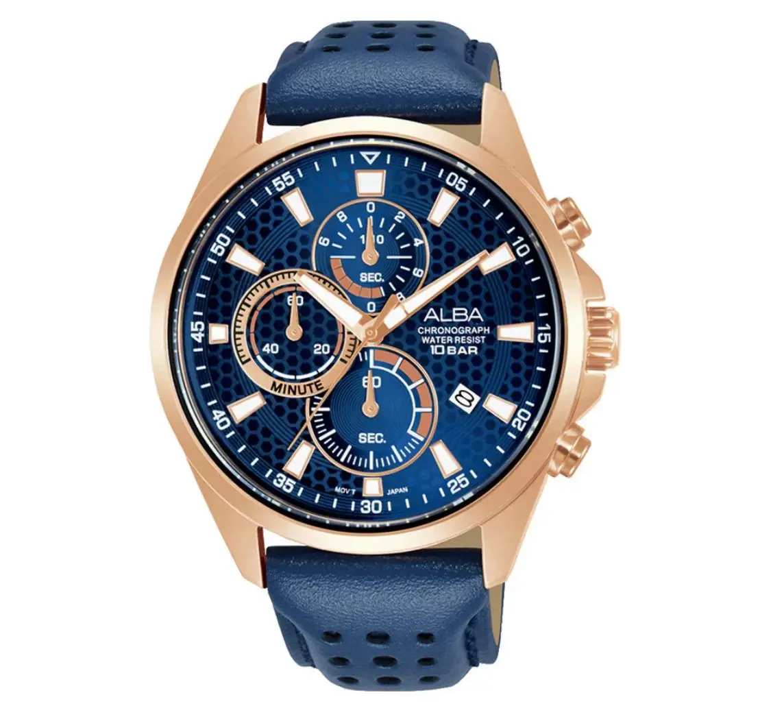 Band Material: Blue leather strap
