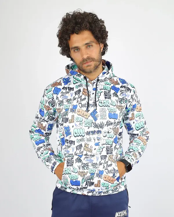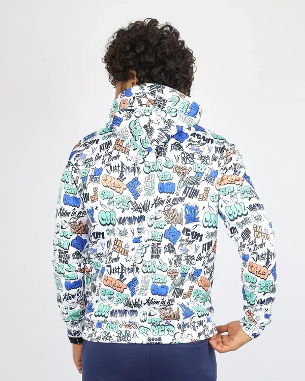 Allover Printed White Hoodie