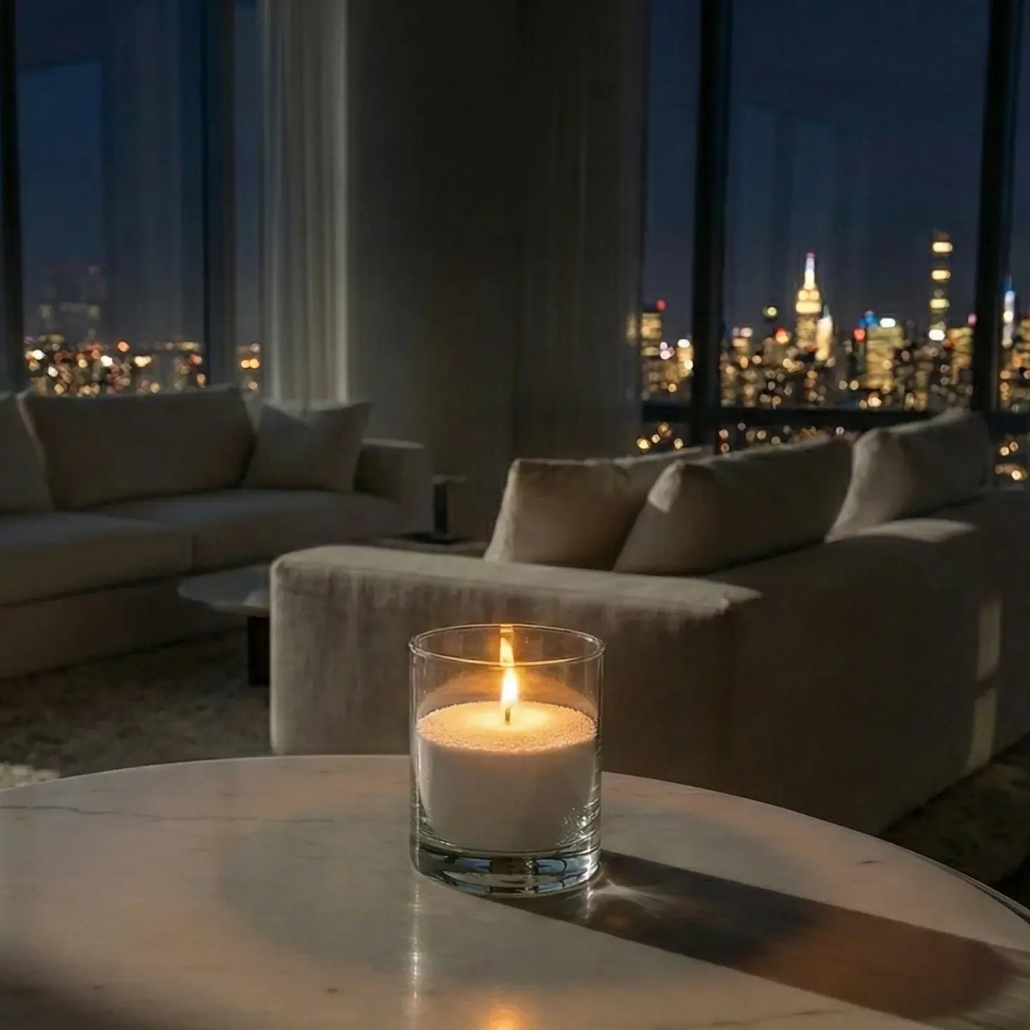 A minimal cylindrical glass holder designed to highlight simplicity and light. The transparent form allows light to pass through effortlessly, creating subtle reflections and making it a versatile piece that blends seamlessly into any modern or neutral interior.