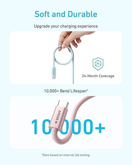 What You Get: Anker Zolo USB-C to USB-C Cable (6 ft, 240W, Braided), welcome guide, 18-month warranty, and our friendly customer service