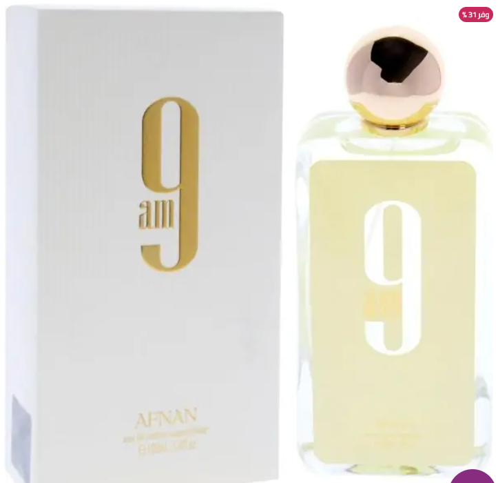 • الوصف : 9am Afnan عطر للنساء . إفتتاحية العطر الليمون, الماندرين (اليوسفي), الهيل و الفلفل الوردي; قلب العطر الخزامي, التفاح الأخضر, زهر البرتقال و الورد; قاعدة العطر تتكون من المسك, الطحالب, خشب الأرز و الباتشولي