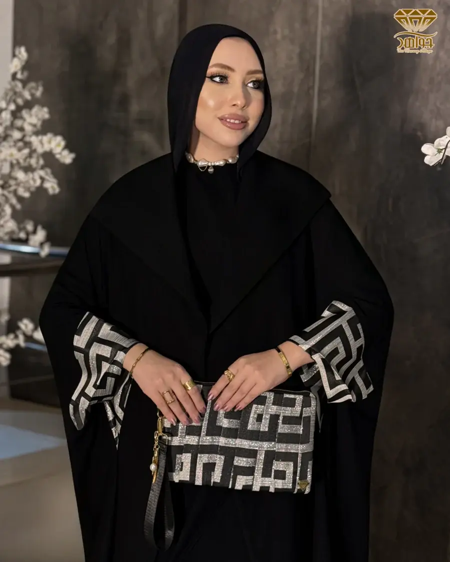 عباية بتصميم فخم بخامة برلين مستورد مع إضافة أكمام شيك بخامة چاكار مستورد.