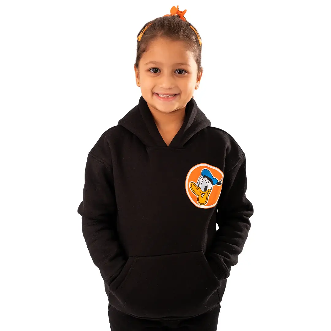 Featuring the fun “Donald duck” print, this hoodie brings classic cartoon charm and cheerful energy to every outfit — perfect for kids who love to stand out with style.