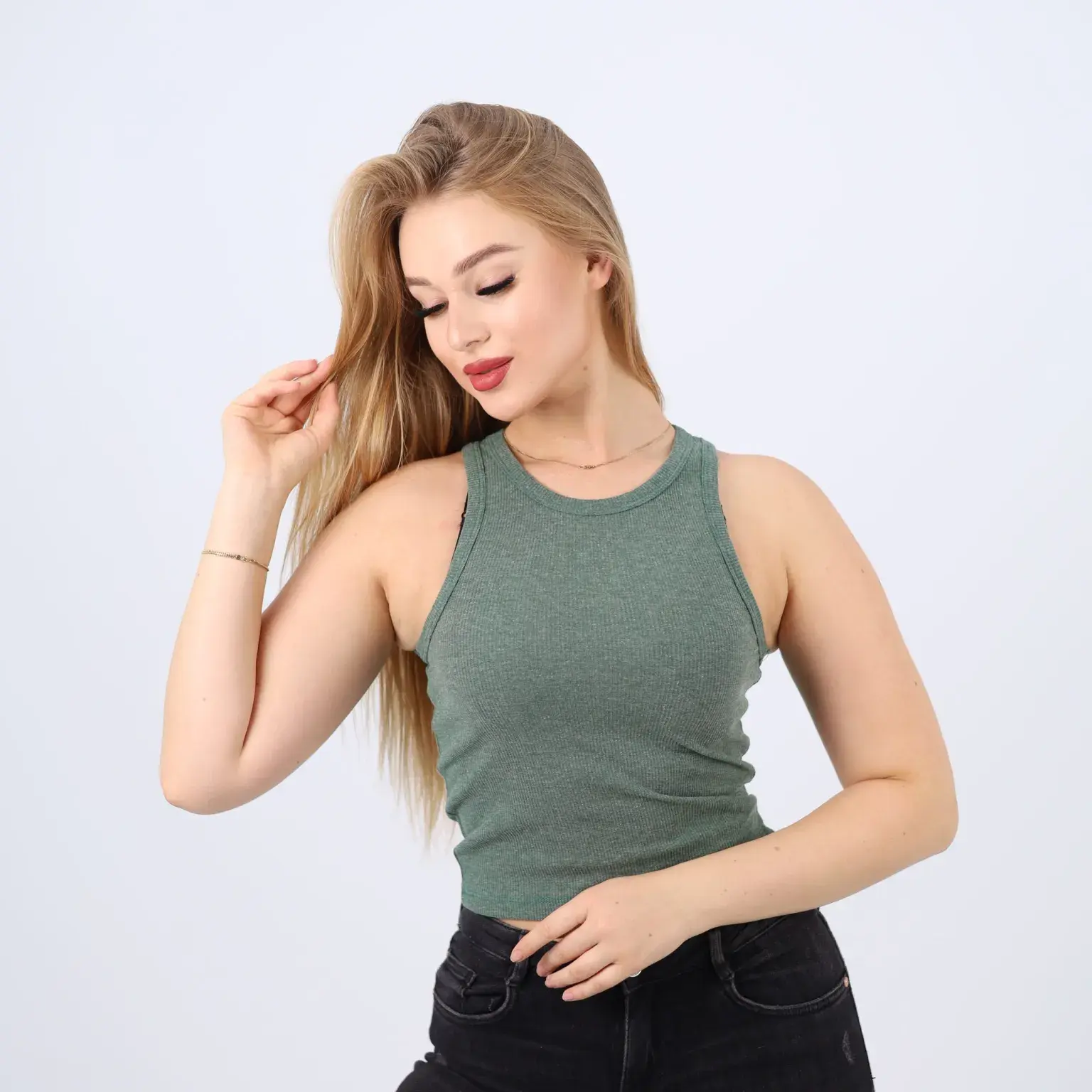 Cotton Ribbed Sleeveless Crop Top – Casual Fitted Tank for Women