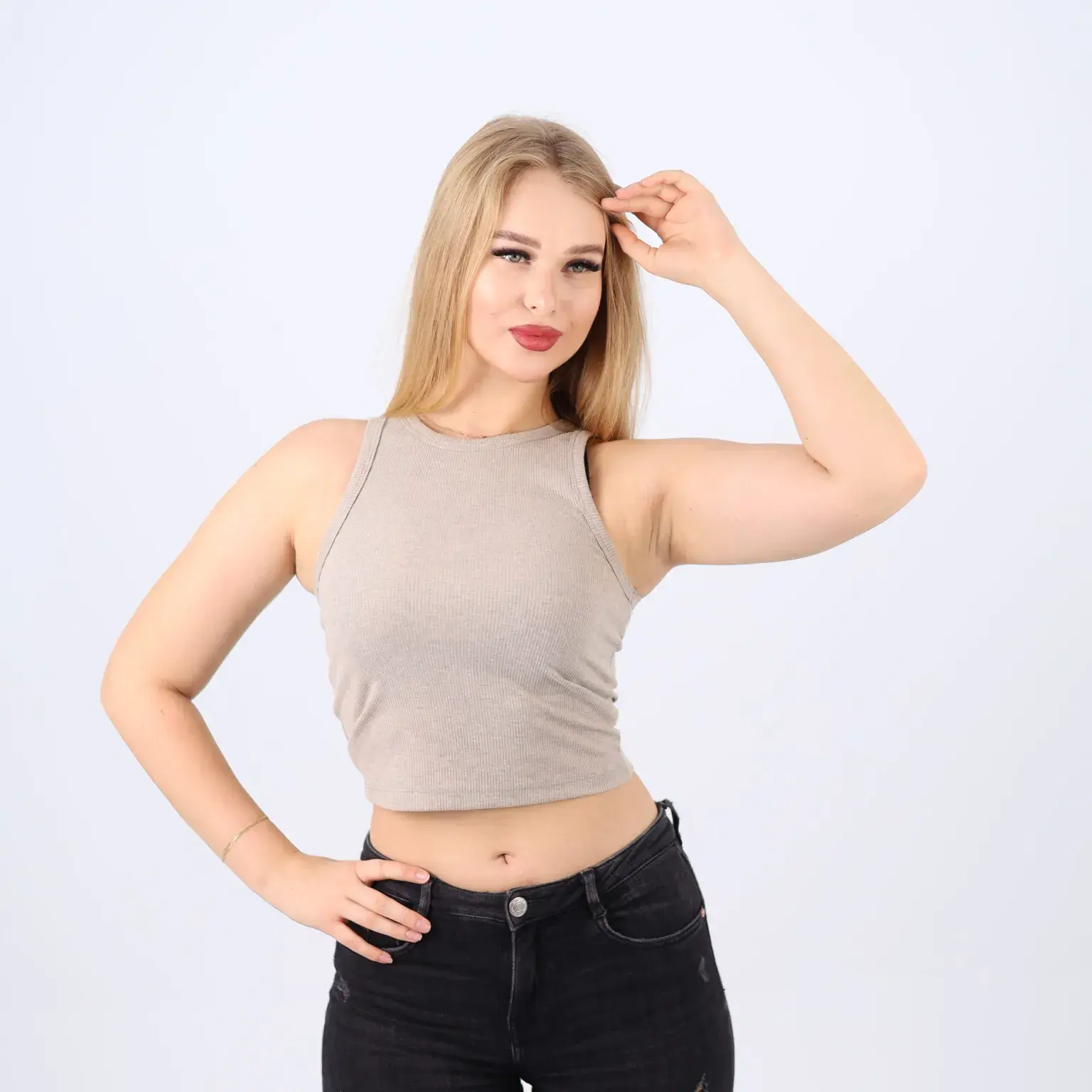 Cotton Ribbed Sleeveless Crop Top – Casual Fitted Tank for Women