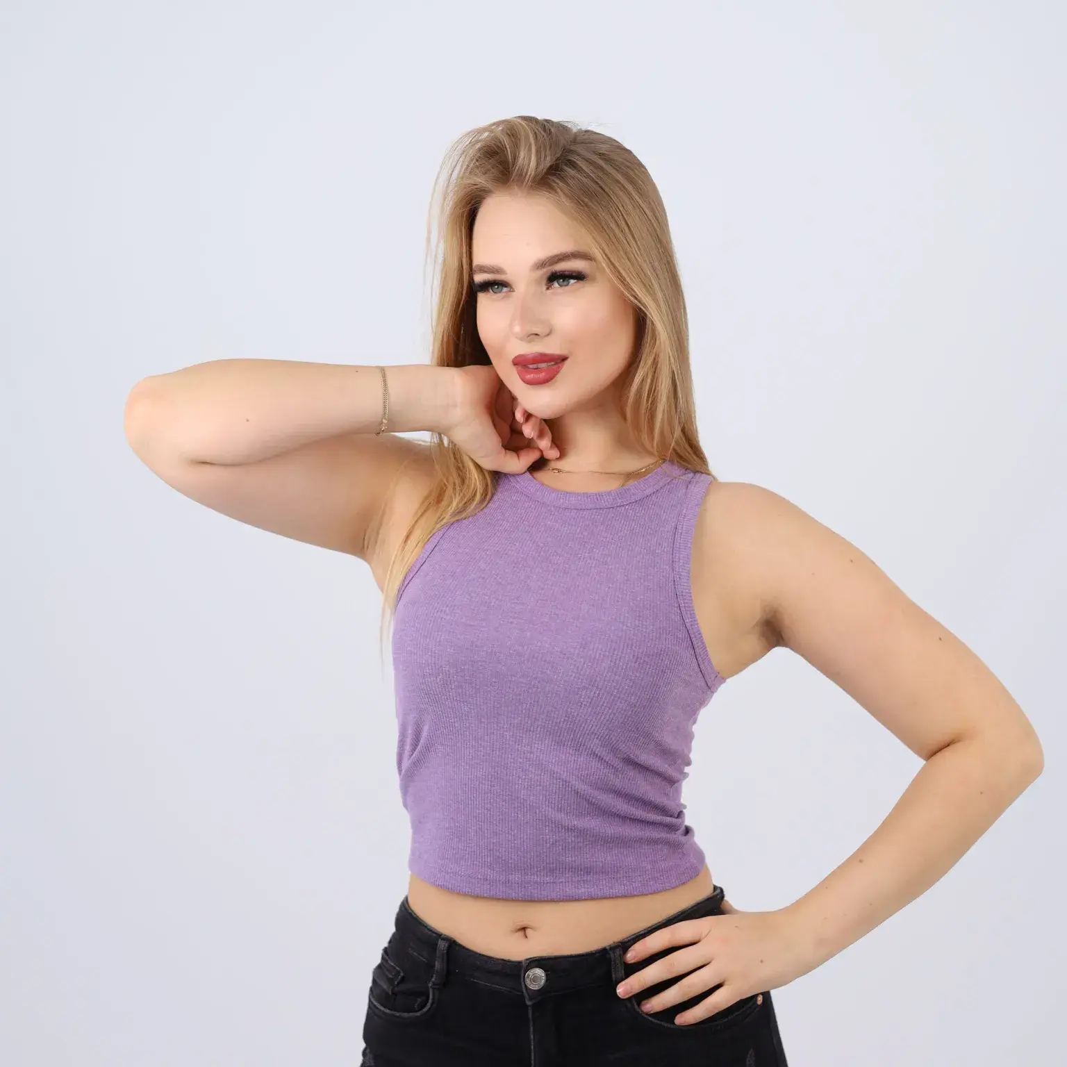 Cotton Ribbed Sleeveless Crop Top – Casual Fitted Tank for Women