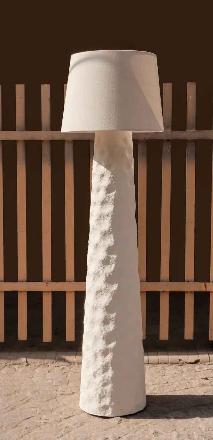 Groovy floor lamp is a bold, attention-grabbing piece that makes a confident statement in any space, featuring a rough textured surface that exudes a raw, industrial-chic aesthetic, this lamp is anything but ordinary.