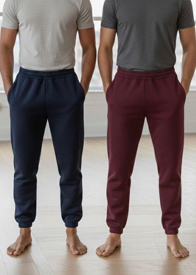 Premium jogger sweatpants made from thick cotton fleece with a smooth matte finish and a structured yet comfortable feel. Designed with a relaxed fit through the hips and thighs, gradually tapering toward the ankle for a clean, modern silhouette. Features an elastic waistband with evenly gathered stitching, angled side pockets, and elastic ankle cuffs that give a classic jogger look. Ideal for everyday casual wear, lounging, and minimal streetwear styling.
