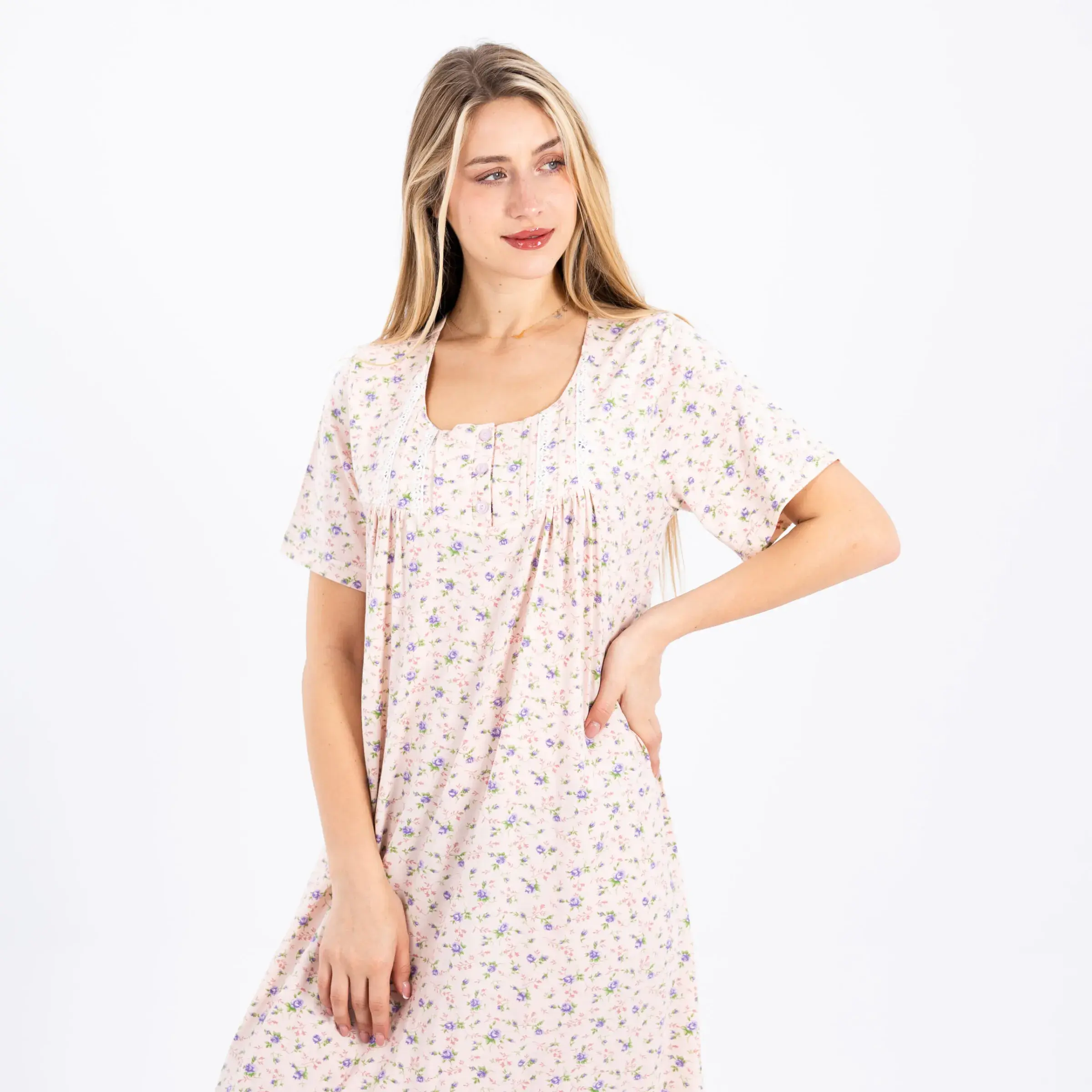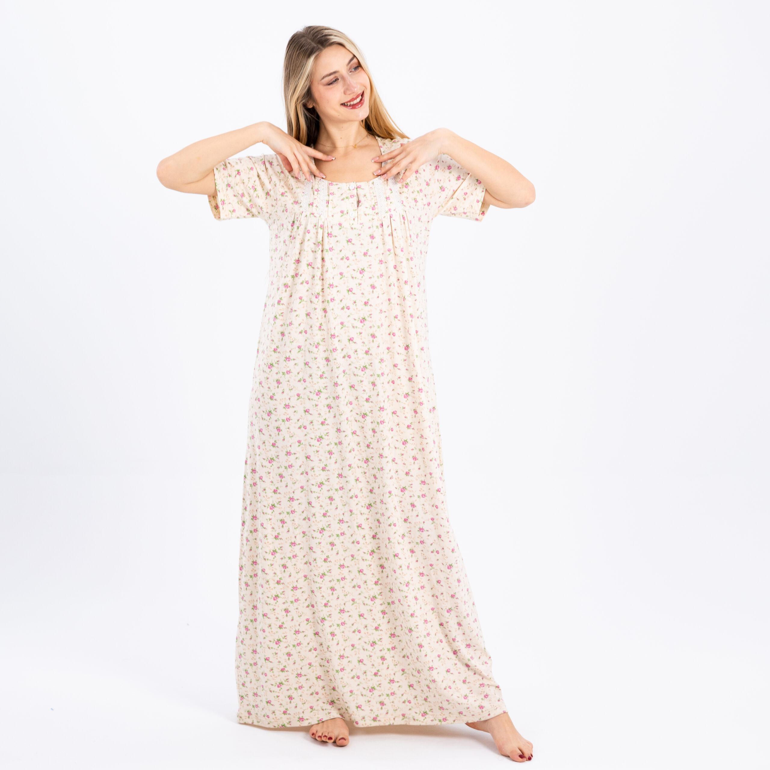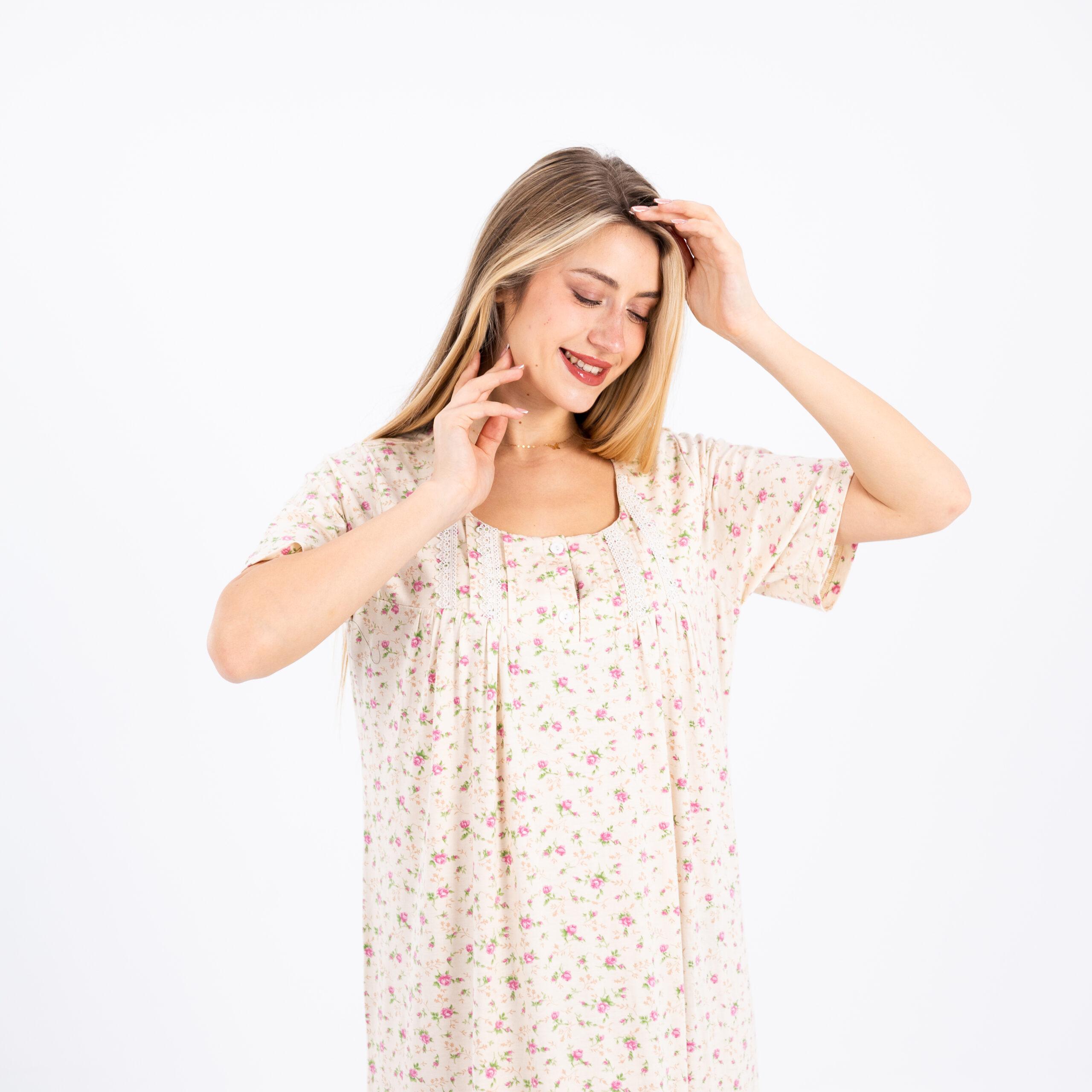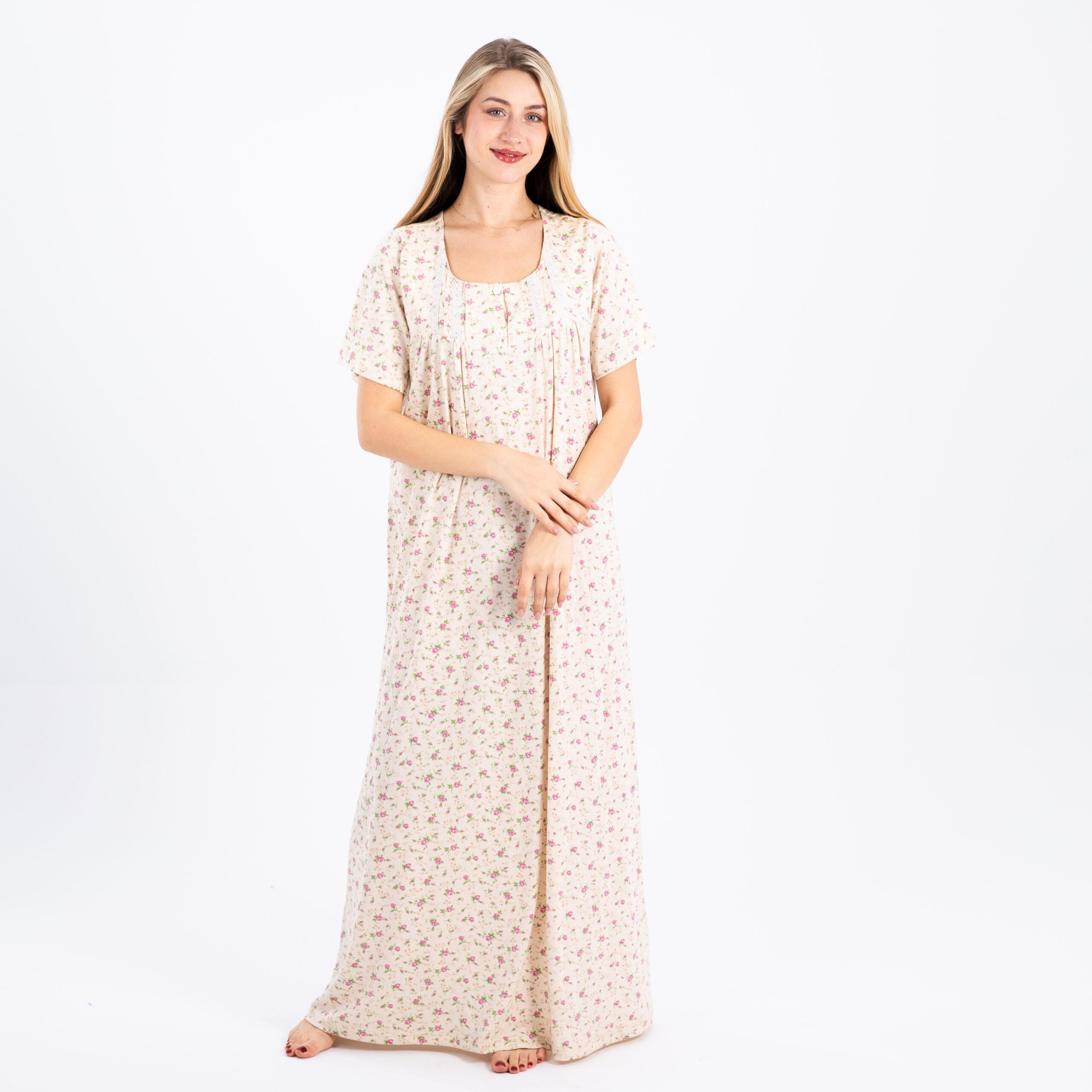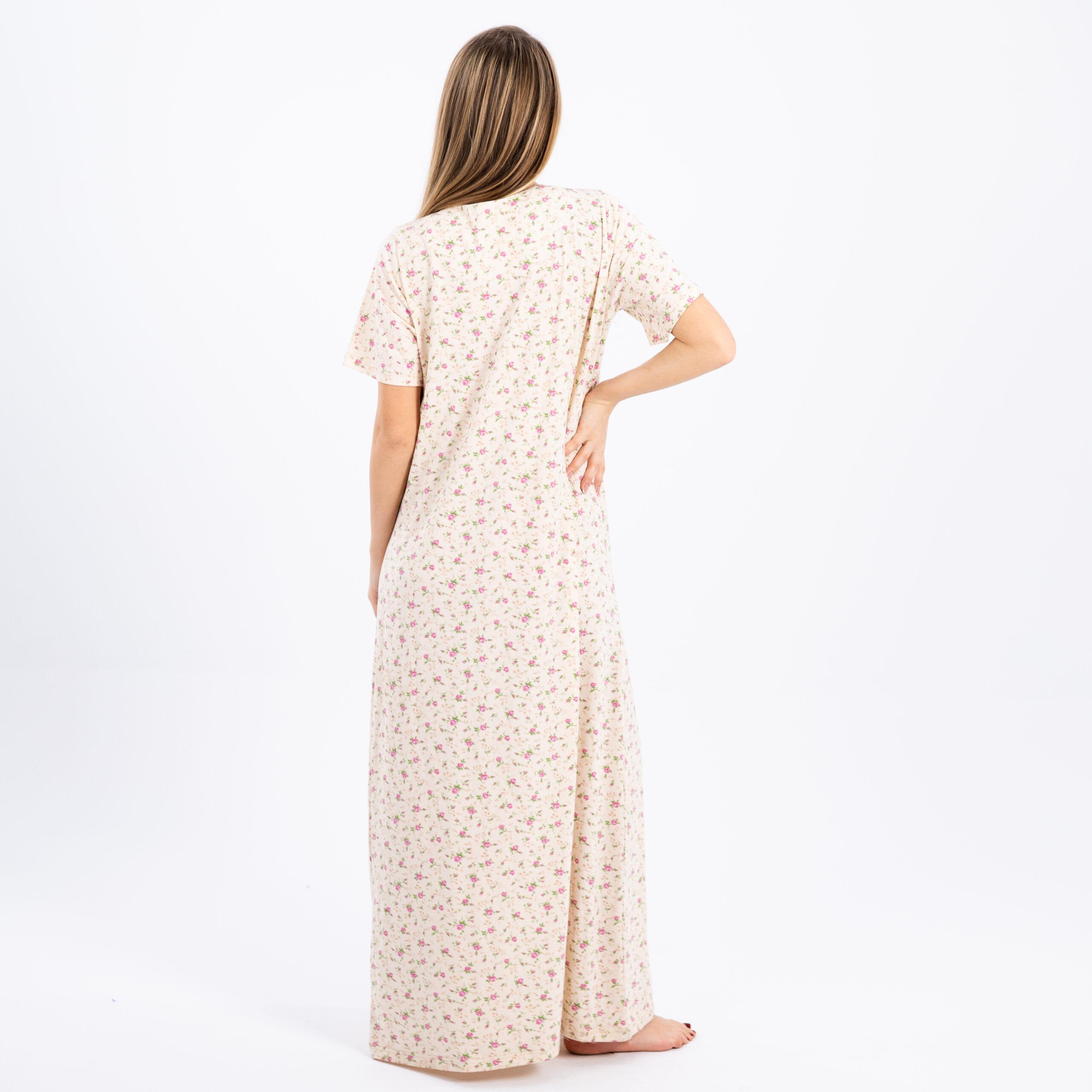 This exquisite women’s nightgown features a delicate floral print that adds a touch of elegance to your nighttime routine. Crafted from soft, breathable fabric, it ensures maximum comfort for a restful night’s sleep. The flattering design and gentle silhouette make it perfect for lounging or a cozy evening at home. Elevate your sleepwear collection with this charming nightgown that combines style and comfort effortlessly.