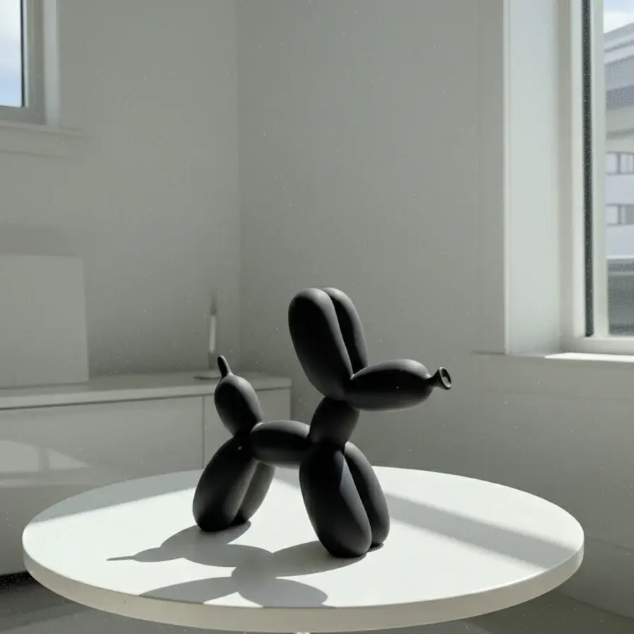 A playful yet sophisticated décor piece inspired by modern pop art. The Matte Balloon Dog Sculpture transforms a whimsical childhood icon into a sleek statement object with its smooth black finish and sculptural form. Ideal for adding a touch of artistic charm to contemporary living spaces, offices, or shelves.