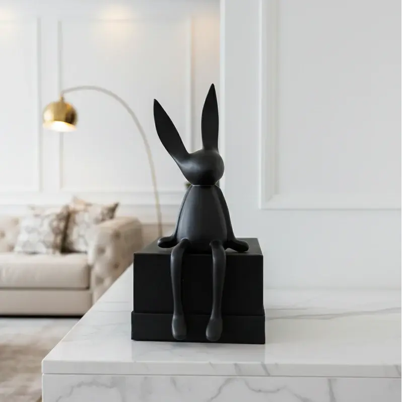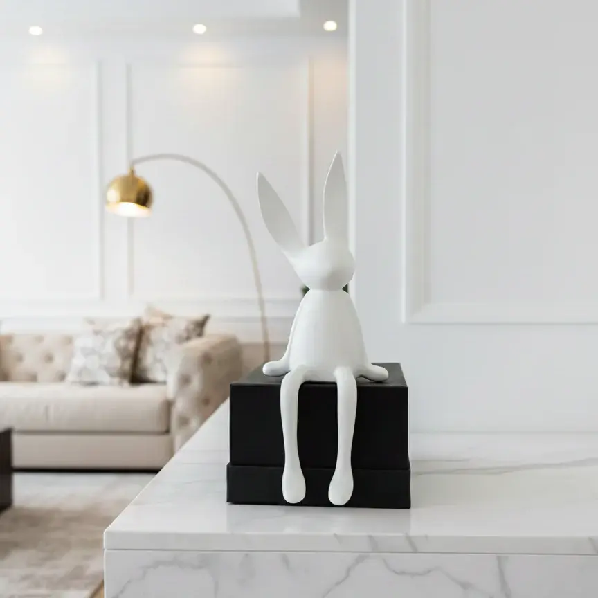 This charming sitting bunny figurine adds a soft, playful touch to any space. Designed with long ears, smooth rounded features, and relaxed dangling legs, it brings a modern and minimal character to shelves, consoles, desks, and bedside tables. Available in matte black, matte gold, and glossy white, it’s a simple decorative piece that blends easily into any interior style. (Doesn’t come with black box)
