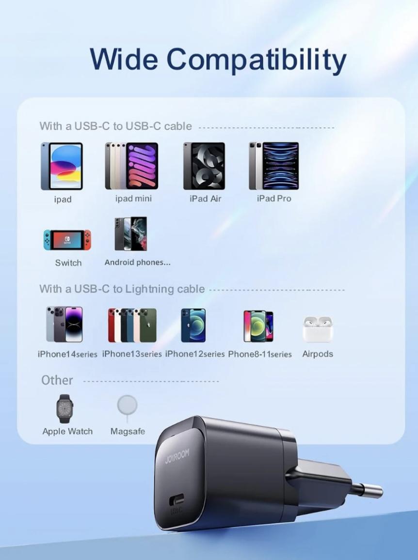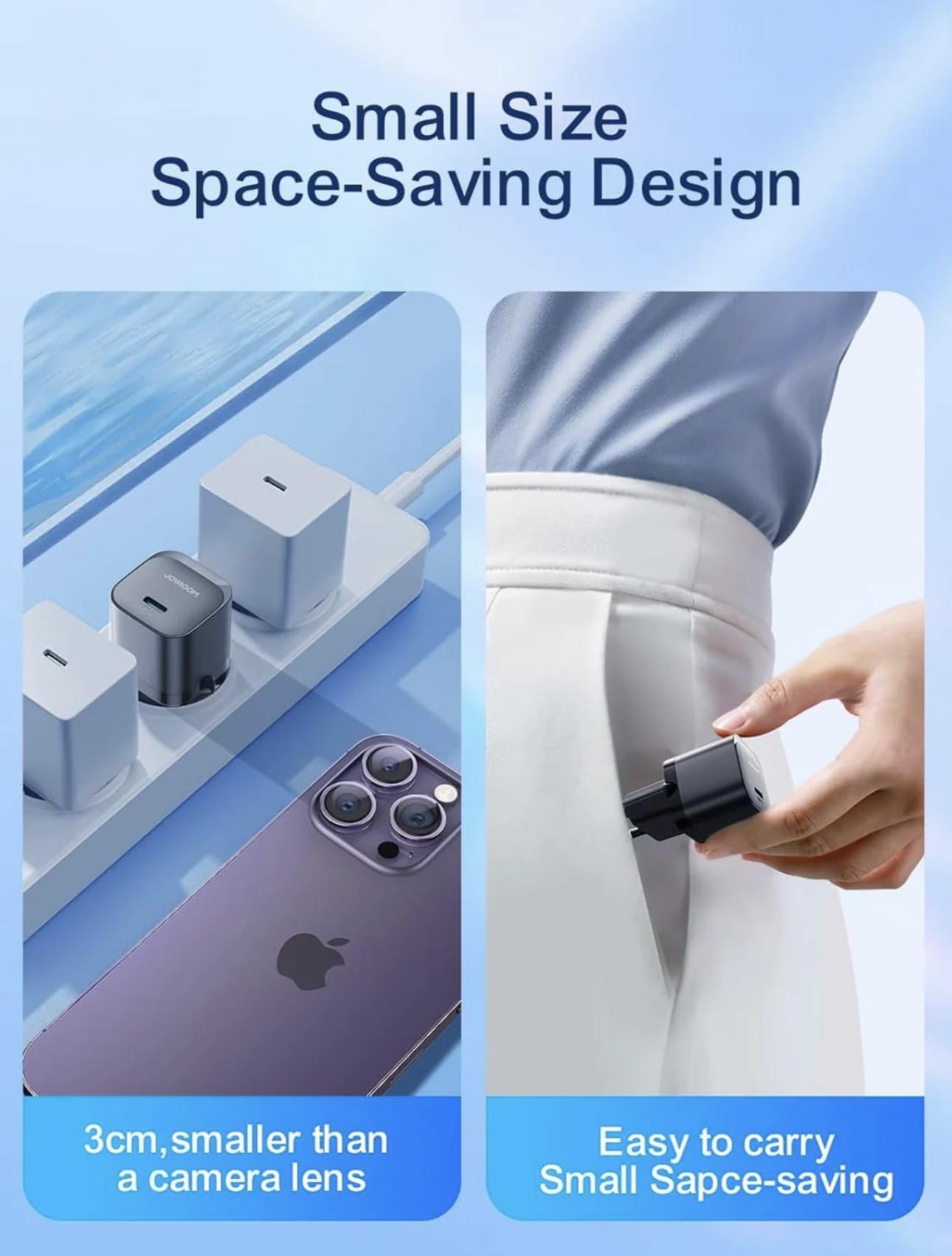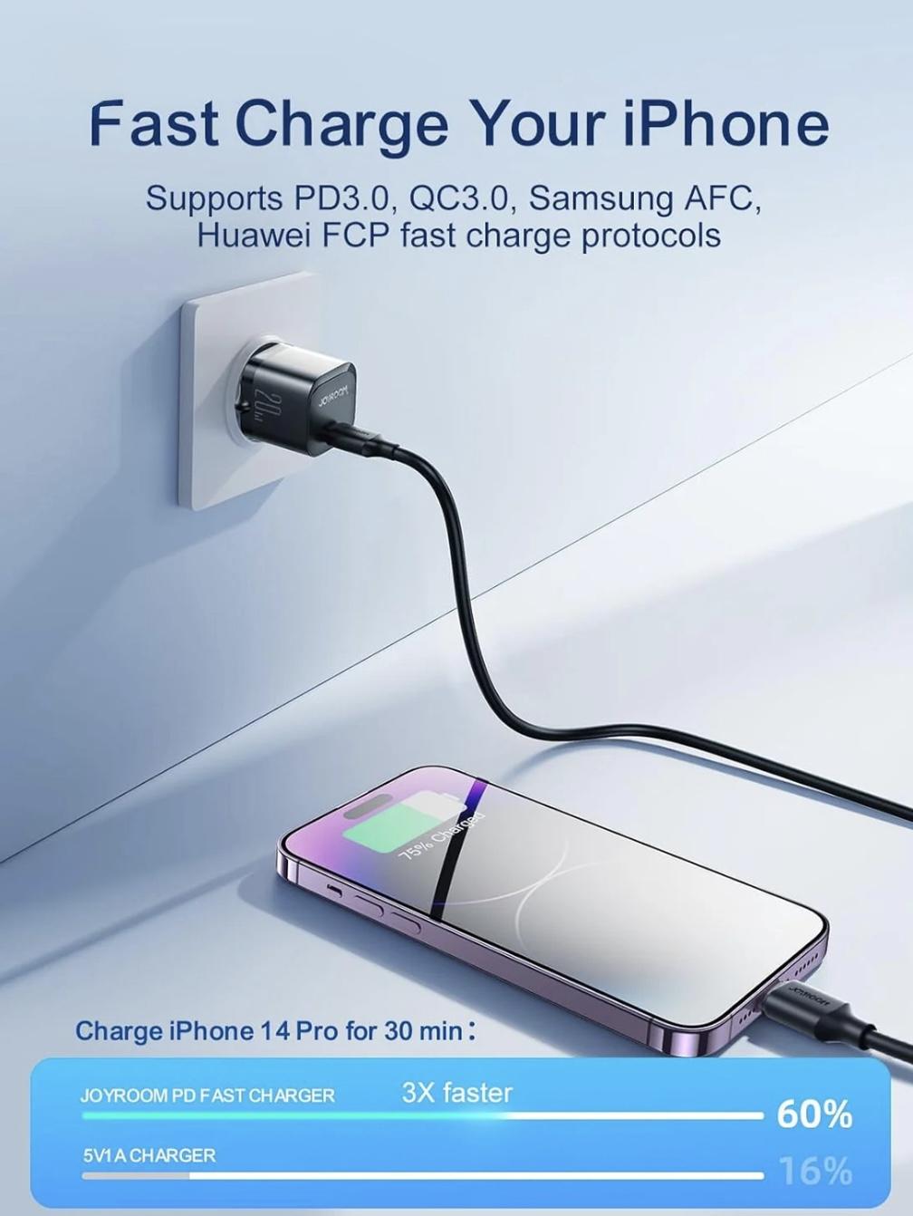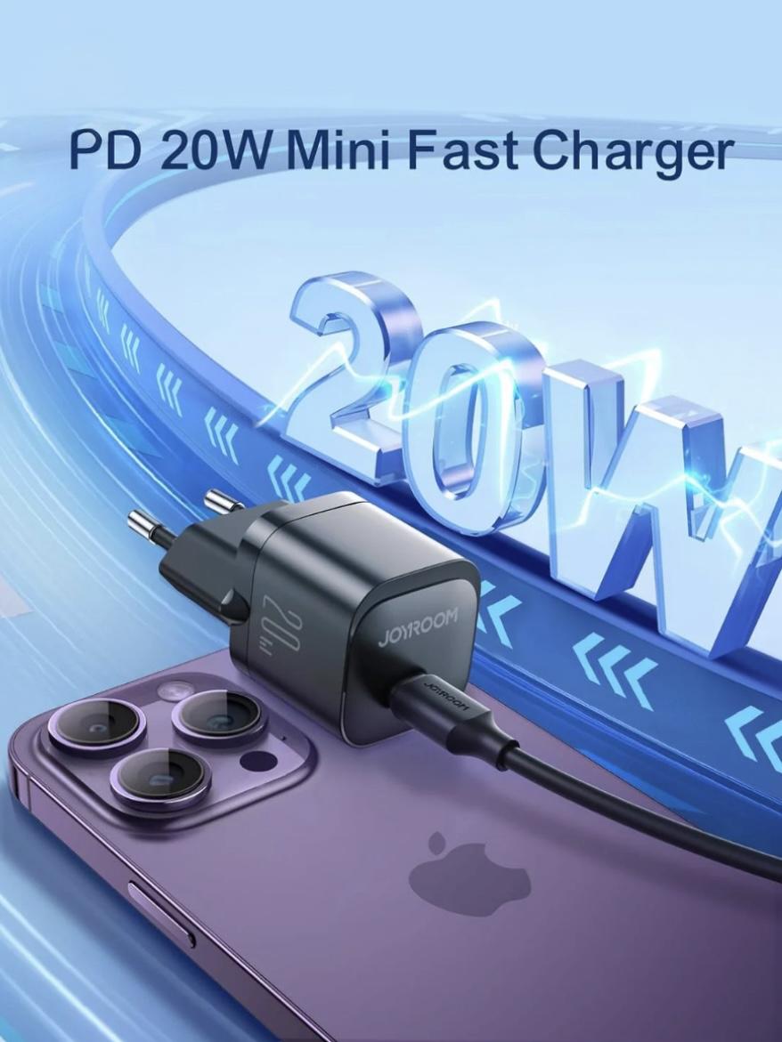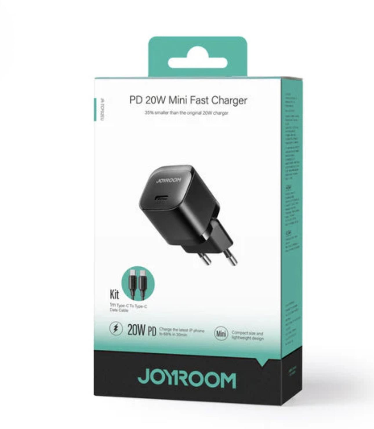 Joyroom JR-TCF02 PD 20W Mini Intelligent EU Fast Charger with C to C Cable, 1 Meter Length, Black