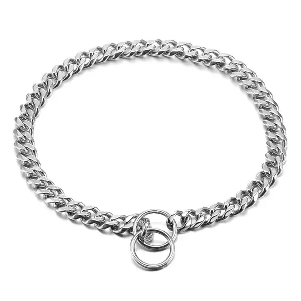 طوق سلسلة للكلاب من الفولاذ المطلي بالكروم، مقاس السلك 3 مم × 18 بوصة (45 سم) الطول الإجمالي. الحجم: مصمم خصيصًا للكلاب التي يصل حجم رقبتها إلى 15 بوصة (38 سم)، تمر روابط السلسلة عبر الحلقات الدائرية لتكوين حلقة وينزلق الطوق فوق رأس الكلب. السلسلة المنزلقة للكلاب لها روابط مستديرة ضيقة ومناسبة للكلاب ذات الشعر القصير.