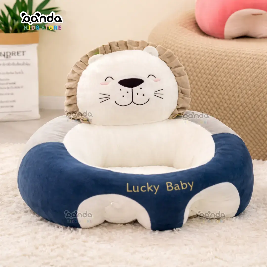 كرسي مخدة تعليم جلوس للاطفال شكل اسد ابيض ازرق