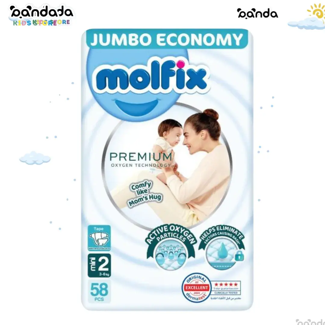 مولفيكس جامبو حفاظ tape عناية مميزة بريميم بتكنولوجيا الاكسجين مقاس 2 , 3-6 كيلوجرام ، ٥٨ حفاظة