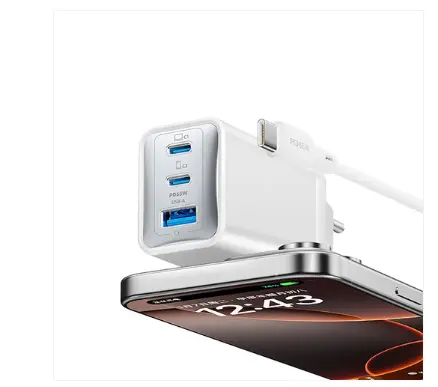 The Recci RC123E GaN Fast Charger delivers powerful and efficient charging with advanced Gallium Nitride (GaN) technology. With a total output of 65W, dual USB-C ports, and a USB-A port, it allows you to charge multiple devices at the same time.