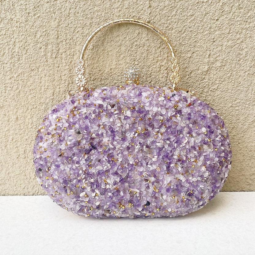 Elevate your evening look with this stunning Purple Mosaic Clutch. Featuring an intricate mosaic pattern in rich purple tones, this compact clutch combines artistic design with practical functionality. Perfect for weddings, parties, or special occasions, it offers enough space for your essentials while making a bold fashion statement. The sophisticated aesthetic pairs beautifully with both formal and semi-formal attire, making it a versatile addition to any collection.