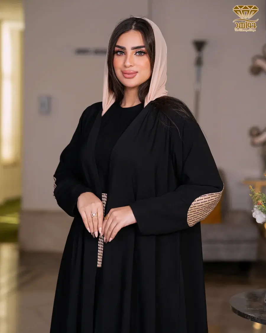 عباية بتصميم مميز مصنوعة بخامة برلين مستورد بإضافة نقشة فخمة من الچاكار المستورد.