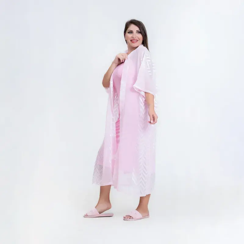 Satin Robe with Long Cotton Nightgown – Sleeveless & Perfect for Summer Comfor