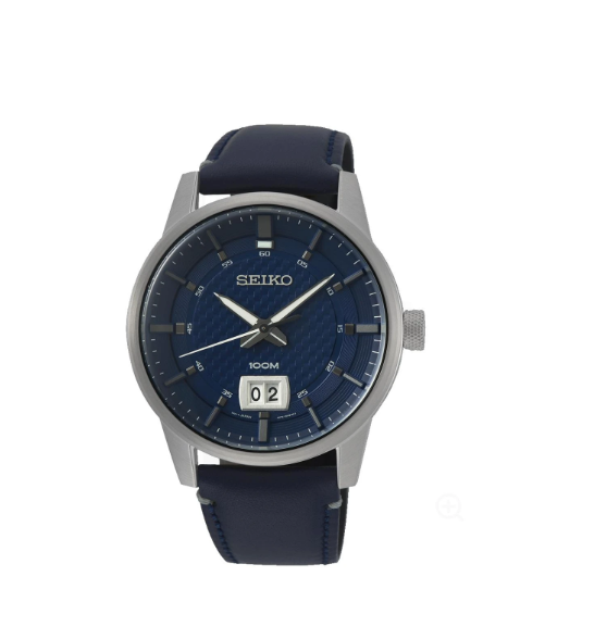 SEIKO Men's Hand Watch QUARTZ Blue Leather Strap, Blue Dial SUR287P1