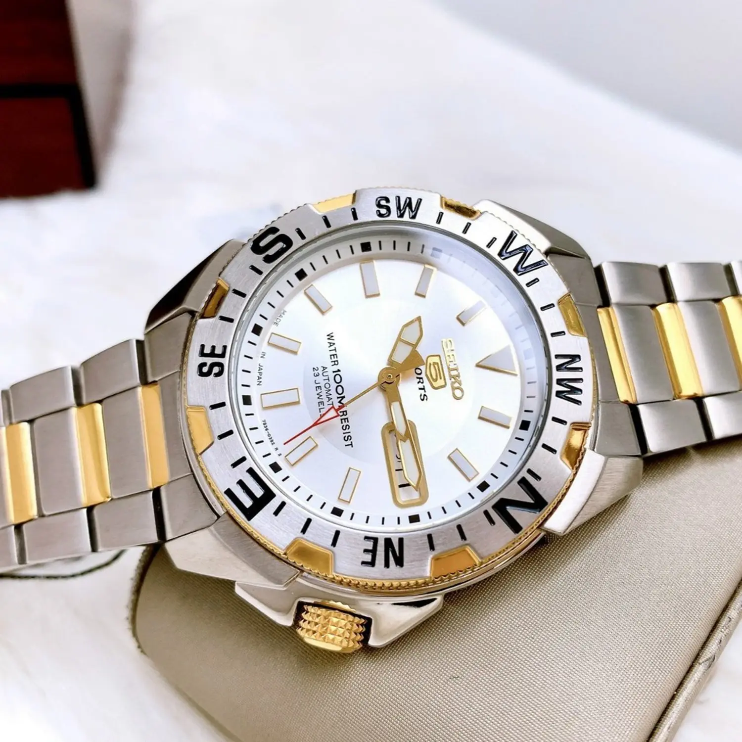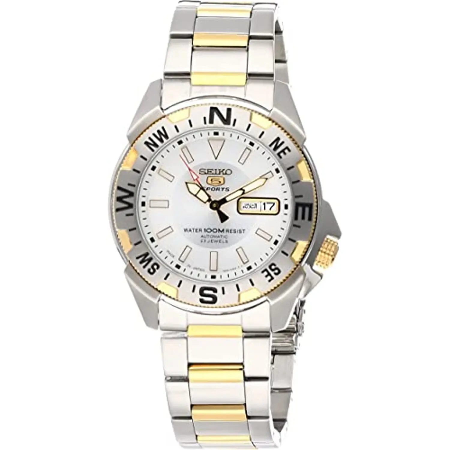 Bezel: Unidirectional rotating bezel with compass markings (N, E, S, W)