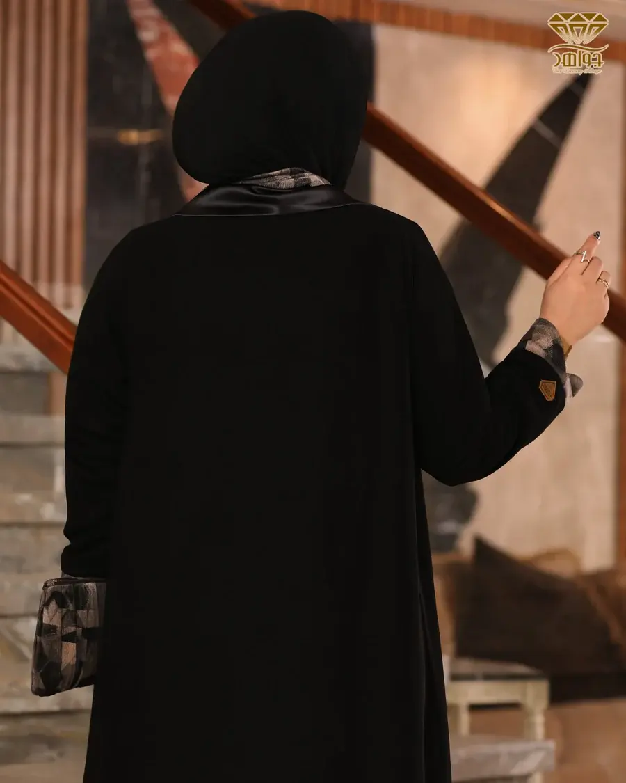 عباية أنيقة بتصميم COAT عصري مصنوعة من خامة برلين مستورد،بإضافة بطانة داخلية ناعمة بالكامل للتصميم، ومزودة بياقات وأكمام من المخمل الناعم الفخم والمميز.