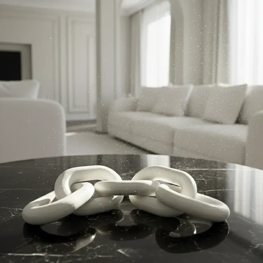 Its interlocking links represent unity and balance, making it a versatile addition to consoles, shelves, or coffee tables. Available in Matte White and Glossy Black, it complements a variety of color palettes — from Scandinavian simplicity to bold contemporary spaces.