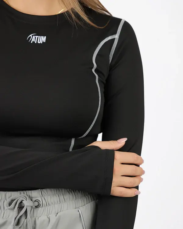A classic and essential piece for any wardrobe, our black Streamline Long Sleeve Women's Fitness Top is both stylish and functional.