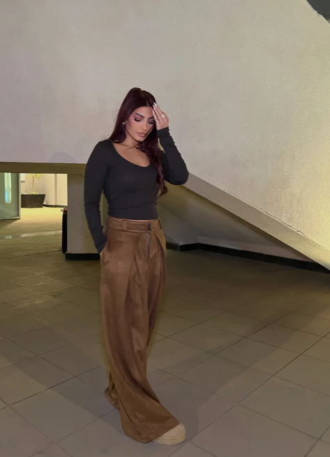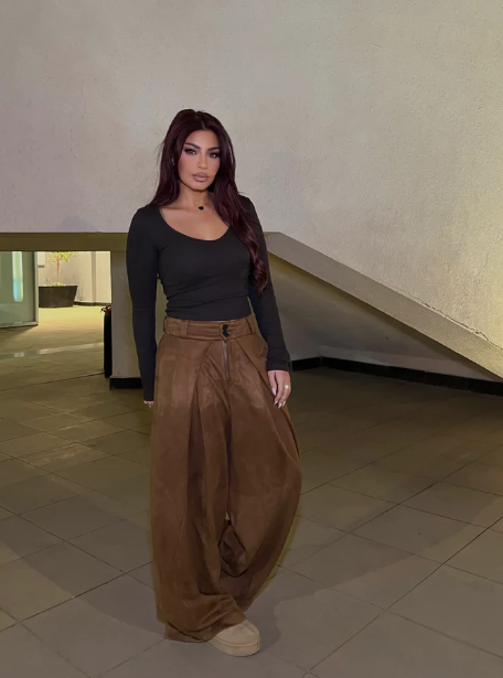 Suede Wide-Leg Pants Brown
