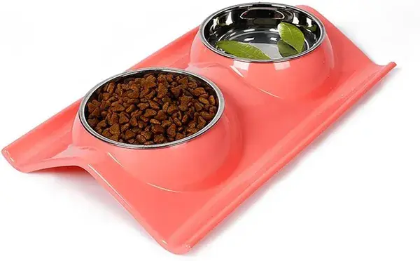 وعاء مزدوج من الفولاذ المقاوم للصدأ للمياه والأكل للحيوانات الأليفة