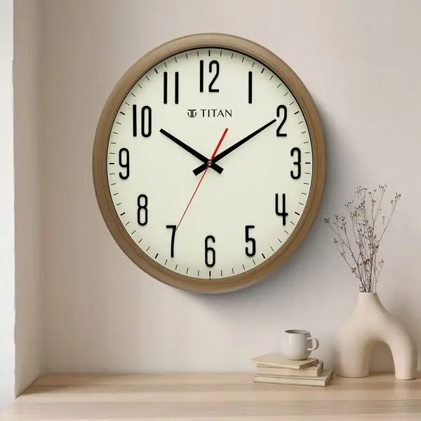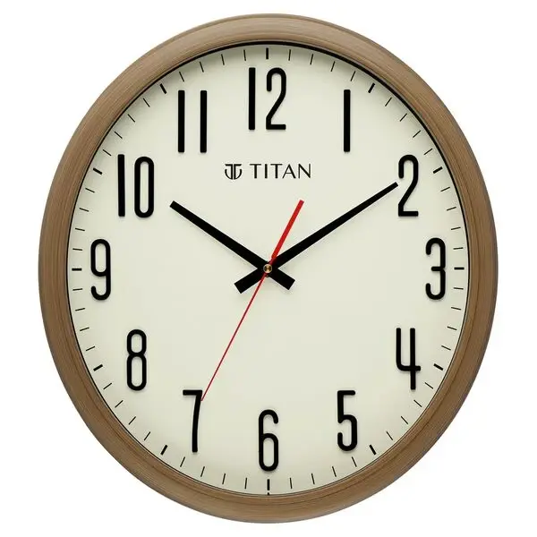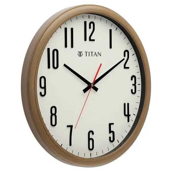 Titan Brown Wooden Texture Oval Clock with White Dial and Silent Sweep Technology 37 cm x 41.5 cm (Large)