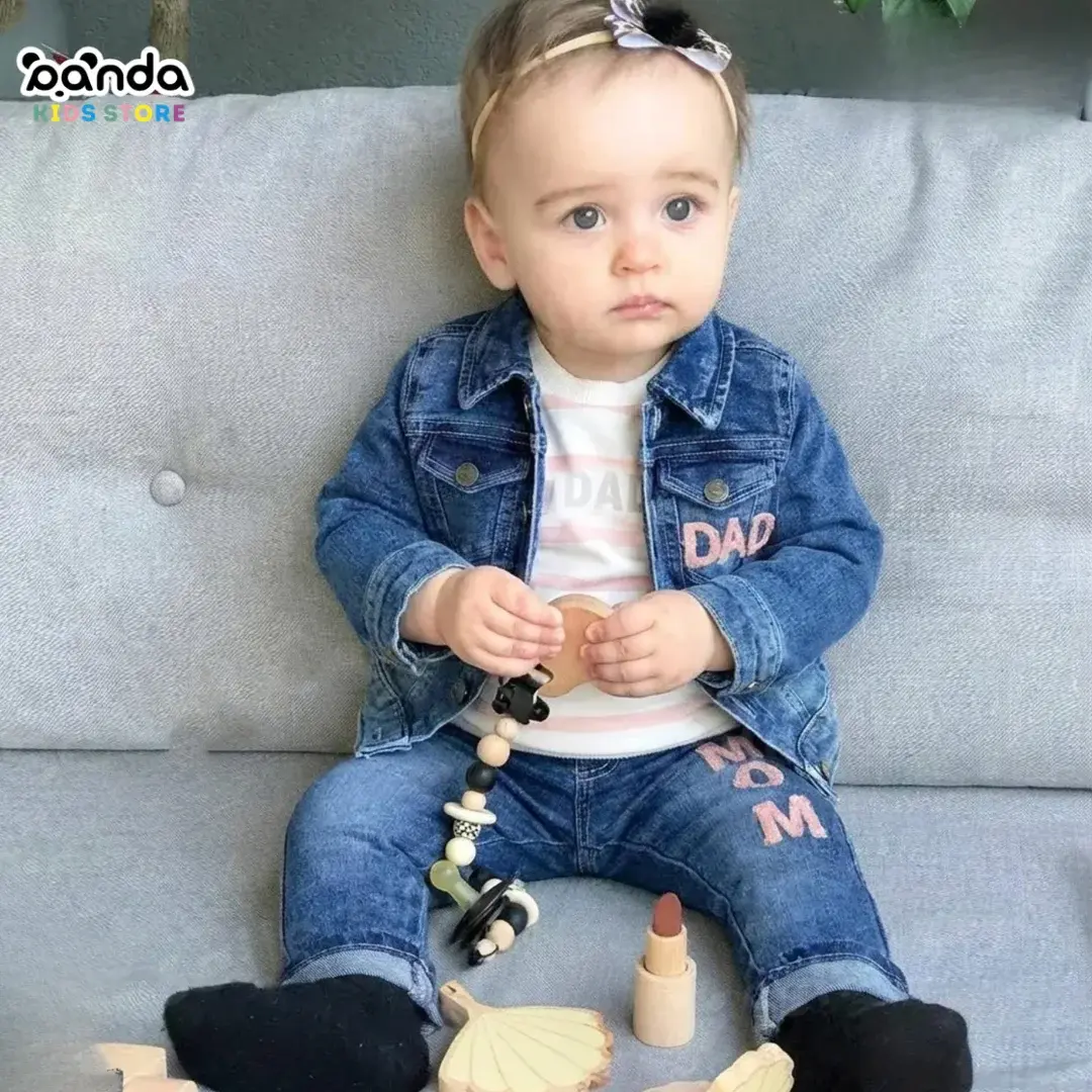 طقم خروجي بناتي بدلة جينز ، جاكيت وتيشرت كم وبنطلون