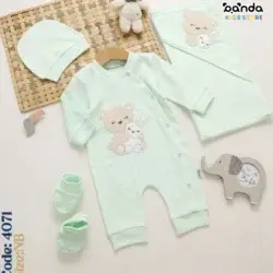 طقم مواليد مستشفى وسبوع قطن ٤ قطع اقتصادي ، كوفرتة وسلوبيت وطاقية وجوانتي ، شيك بيبي ، دب وارنب بناتي منقط