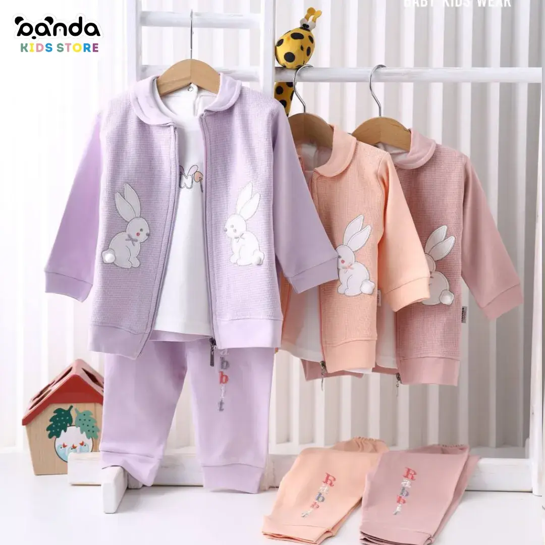 ترنج ٣ قطع قطيفة شتوي جاكيت وتيشرت وبنطلون تطريز فيل