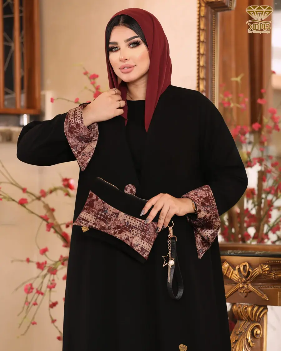 عباية بتصميم فخم ومُختلف، مصنوعة من خامة برلين مستورد مع قلبة كم وزراير بخامة من المخمل الناعم المستورد بنقشة راقية، والزراير مزودة بكباسين للتحكم في فتح وغلق العباية، بإضافة بطانة داخلية ناعمة تُضيف ثبات وأناقة للتصميم.